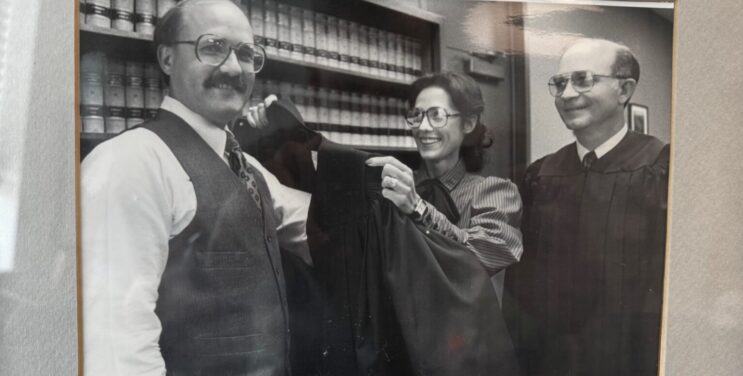 (left to right) Judge Stephen Sillman, Veronica (Stephen’s wife), and Judge Agliano. 1982